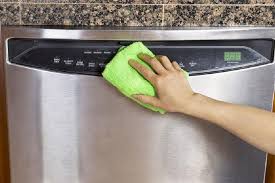 تنظيف غسالة الصحون من الخارج : يستخدم الماء والصابون وإسفنجة في تنظيف السطح البلاستيكي لغسالة الصحون، أمّا السطح المصنوع من الستانليس ستيل، فيمكن استخدام منظّف الزجاج ومسحه باستخدام فوط ناعمة، ومراعاة عدم تبليل المنطقة الخاصة بأدوات التّحكم الإلكتروني، والاكتفاء برشّ المنظّف على فوطة ومسح تلك المنطقة.